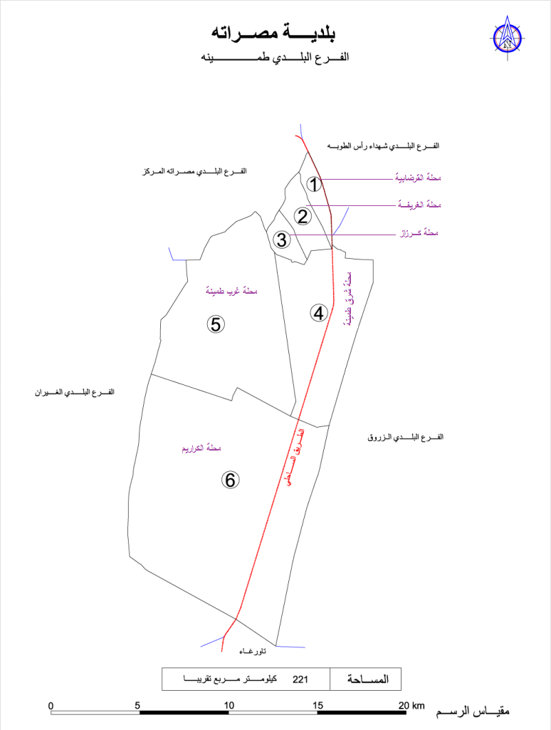 شمالا : الفرع البلدي شهداء رأس الطوبه – الفرع البلدي مصراتة المركز